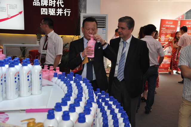 | 密集的人流,是上海美博会的一大“标志”,然而,要留住参观者匆匆的脚步却非易事,这二天,我们名臣股份做到了。美博会第二天一早,名臣股份展馆就排起了长龙,观展的老客户、新客户络绎不绝,关切的询问,热情细致的回答,比开馆首日更为火爆。公司合作伙伴德国原料供应商代表也来到名臣股份展馆参观。