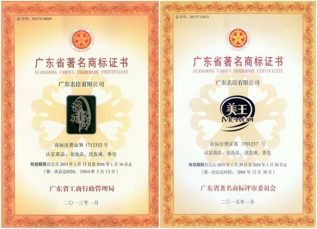 品牌荣誉 “蒂花之秀”是广东省著名商标(广东省工商行政管理局) “美王”是广东省著名商标(广东省著名商标评审委员会)