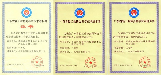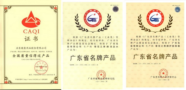 产品荣誉 全国质量信得过产品(中国质量检验协会) “蒂花之秀”洗发水是广东省名牌产品(广东卓越质量品牌研究院) “蒂花之秀”护肤膏霜是广东省名牌产品(广东省名牌产品评价中心) 去屑洗发露系列产品是广东省高新技术产品(2014年)(广东省高新技术企业协会) 去屑护发素系列产品是广东省高新技术产品(2014年)(广东省高新技术企业协会) 低粘度护肤乳液系列产品是广东省高新技术产品(2014年)(广东省高新技术企业协会)