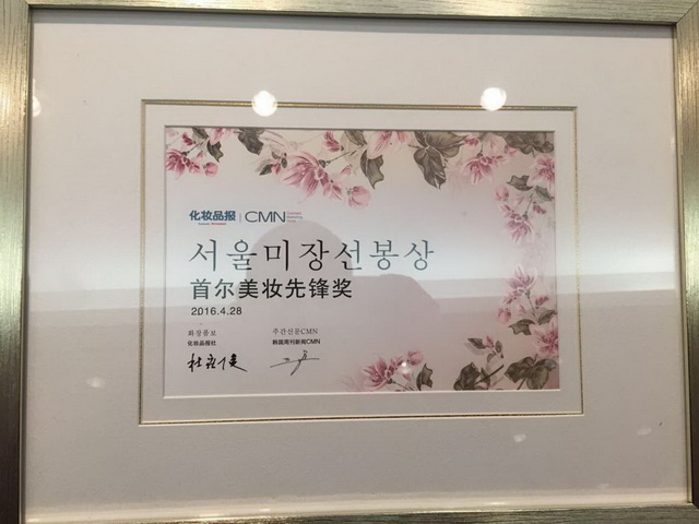 | 2016年4月28日,首尔国际化妆品美容产业博览会期间,在化妆品报社和韩国周刊新闻CMN联合主办的“中国好产品首尔峰会”上,名臣健康用品股份有限公司旗下品牌蒂花之秀精油奢养修护洗护系列荣获组委颁发的“首尔美妆先锋奖”!名臣健康用品股份有限公司总经理助理代表公司领取这项殊荣!