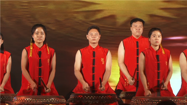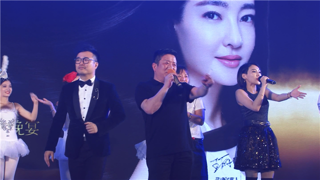 员工代表表演名臣之歌 接下来还有《潮州大锣鼓》、人屏互动表演、歌舞表演、魔术、女子乐坊的精彩演出。