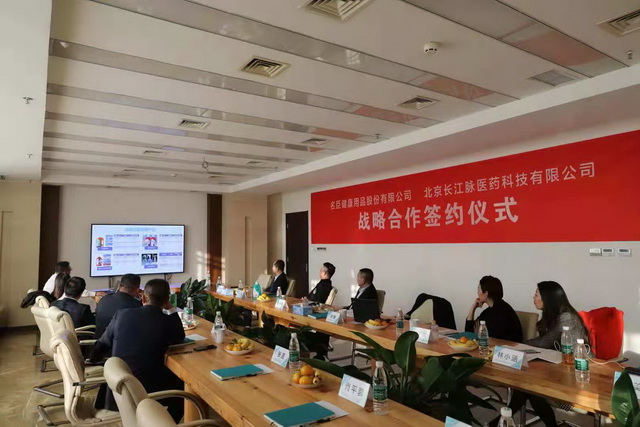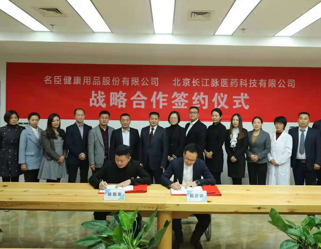 | 经过一段时间的持续接触及深度沟通、研讨,名臣健康用品股份有限公司(以下简称“名臣健康”)与北京长江脉医药科技有限责任公司(以下简称“长江脉”)签署了《战略合作框架协议》。双方于2018年10月25日在北京长江脉公司总部举行了简单而隆重的签约仪式。