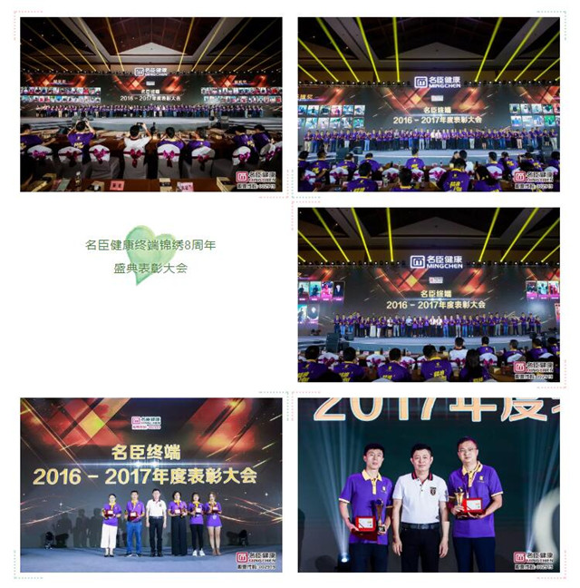 随后,名臣健康终端锦绣8周年盛典表彰大会在万众期待中隆重开启,来自全国各地120多位优秀合作伙伴纷纷走上领奖台,领取属于他们的光辉与荣耀。获奖者脸上露出的灿烂笑容,台下观众热情高涨的欢呼声、呐喊声和激烈掌声,将活动气氛推向了最高潮。有这样一群优秀合作伙伴们的鼎力支持,未来的名臣健康必将更繁荣强盛! 迈向新征程,实现中国梦