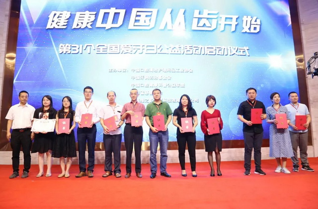 | 为提高群众口腔健康意识,营造有利于口腔健康的良好社会氛围,9月20日,由中国口腔清洁护理用品工业协会、中国牙病防治基金会、中国口腔健康科普公益联盟、湖南省慈善总会、湖南绿之韵健康科技发展有限公司及中国口腔健康科普公益联盟成员单位共同主办的“健康中国•从齿开始——第31个全国爱牙日公益活动启动仪式”在湖南长沙隆重举行。
