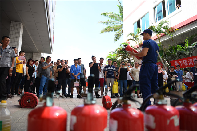 公司安全生产委员会成员、公司各部门、辖属公司负责人、公司各区域消防安全责任人,以及生产车间班组长、仓库主管、保安等岗位人员200多人参加了消防演练。莲下镇政府、镇安全生产办公室、公司主管领导到场观摩演练并指导公司消防安全管理工作。